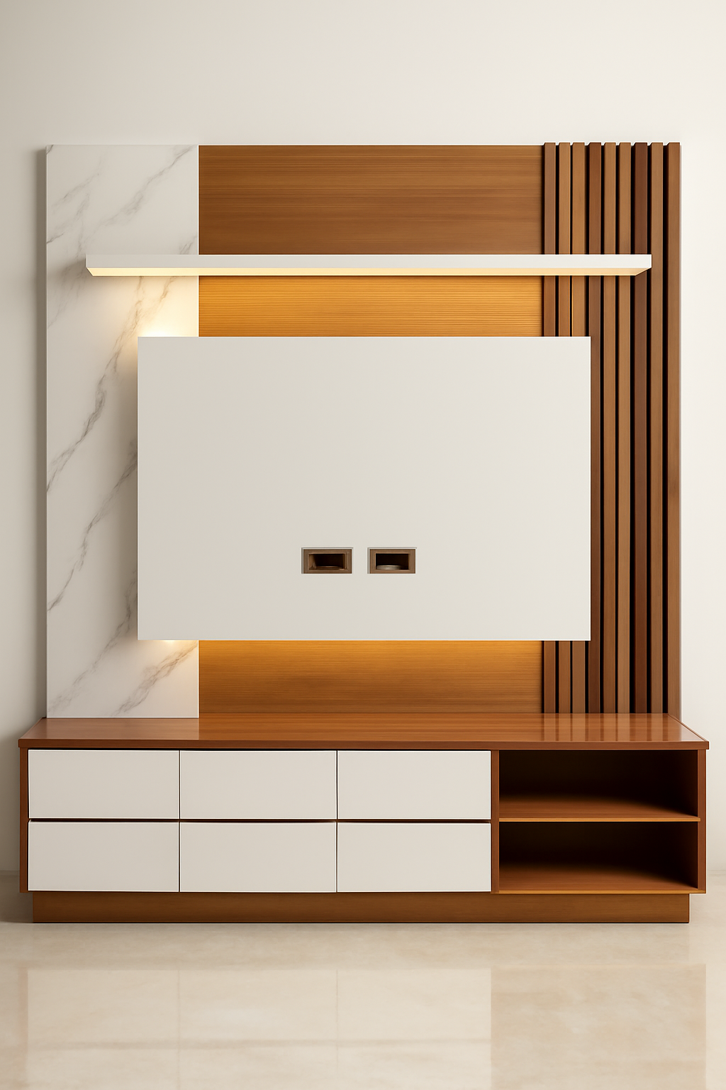 At Titan Interio, we create interiors that are both stylish and functional. We design and build modular kitchens, wardrobes, TV units, and more - all tailored to fit your home and your needs.